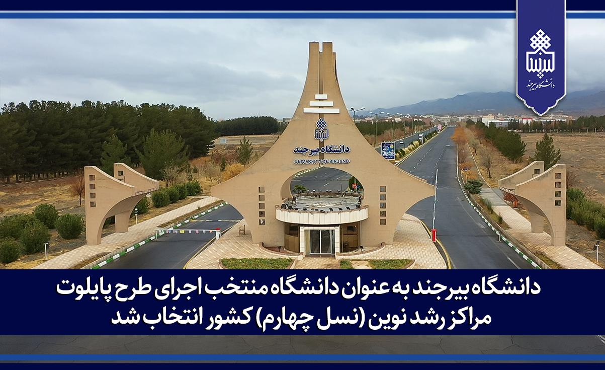 با پیگیری های انجام شده توسط معاونت پژوهش، فناوری و نوآوری و مدیر مرکز رشد دانشگاه، با دریافت ابلاغ رسمی از معاونت فناوری و نوآوری وزارت علوم، تحقیقات و فناوری، دانشگاه بیرجند به عنوان یکی از دانشگاه های منتخب اجرای طرح پایلوت مراکز رشد نوین کشور انتخاب شد. این طرح در مسیر اجرای «مراکز رشد نوین نسل چهارم» و با هدف بازآفرینی نهادی، توانمندسازی و فعال‌سازی مراکز رشد دانشگاهی می‌باشد.